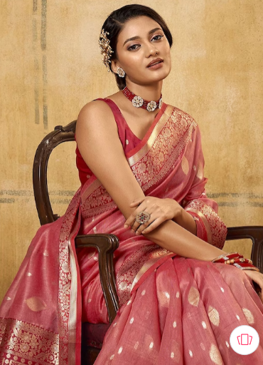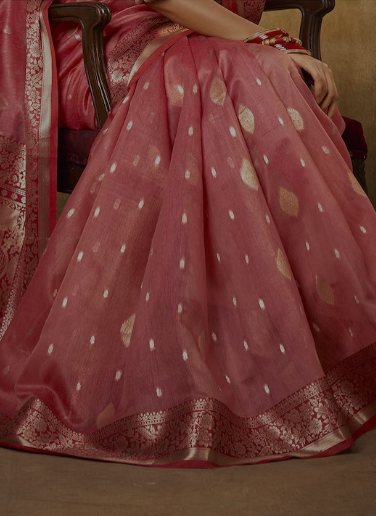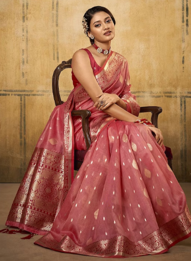 - Pink and gold-toned banarasi saree